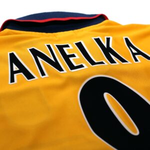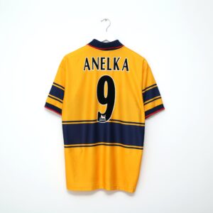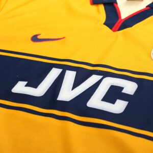 Relive one of the gunners’ greatest achievements with the iconic 1997/98 away shirt, featuring the classic yellow and navy design. This shirt was worn during Arsène Wenger’s first full season as manager, leading the gunners