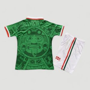 Let your child embrace the vibrant spirit of Mexican football with this iconic Mexico 1998 home shirt, recreated in kids’ sizes. Featuring the striking green design with intricate Aztec-inspired patterns, this shirt was worn during the 1998 FIFA World Cup as Mexico reached the Round of 16. Legends like Cuauhtémoc Blanco, Luis Hernández, and Jorge Campos proudly donned this kit, making it a fan favourite.